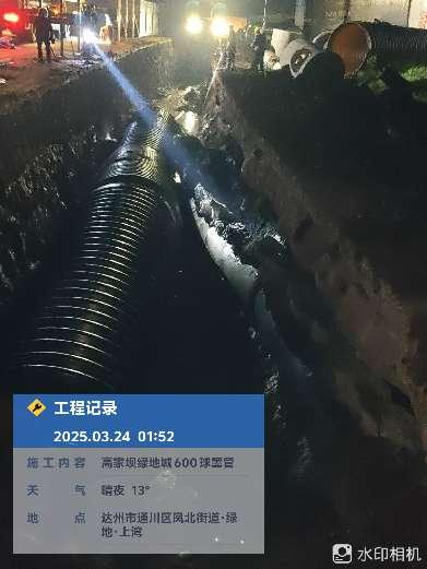 2025年3月23日晚,達(dá)州市金地實(shí)業(yè)發(fā)展集團(tuán)有限公司在高家壩綠地外灘小區(qū)外開(kāi)展防水排澇工程施工中,造成我司60米DN600主水管垮塌脫落,導(dǎo)致石龍溪、高家壩、徐家壩和職教園區(qū)停水,經(jīng)工作人員連續(xù)18小時(shí)的晝夜奮戰(zhàn),已于24日下午2:00恢復(fù)正常。