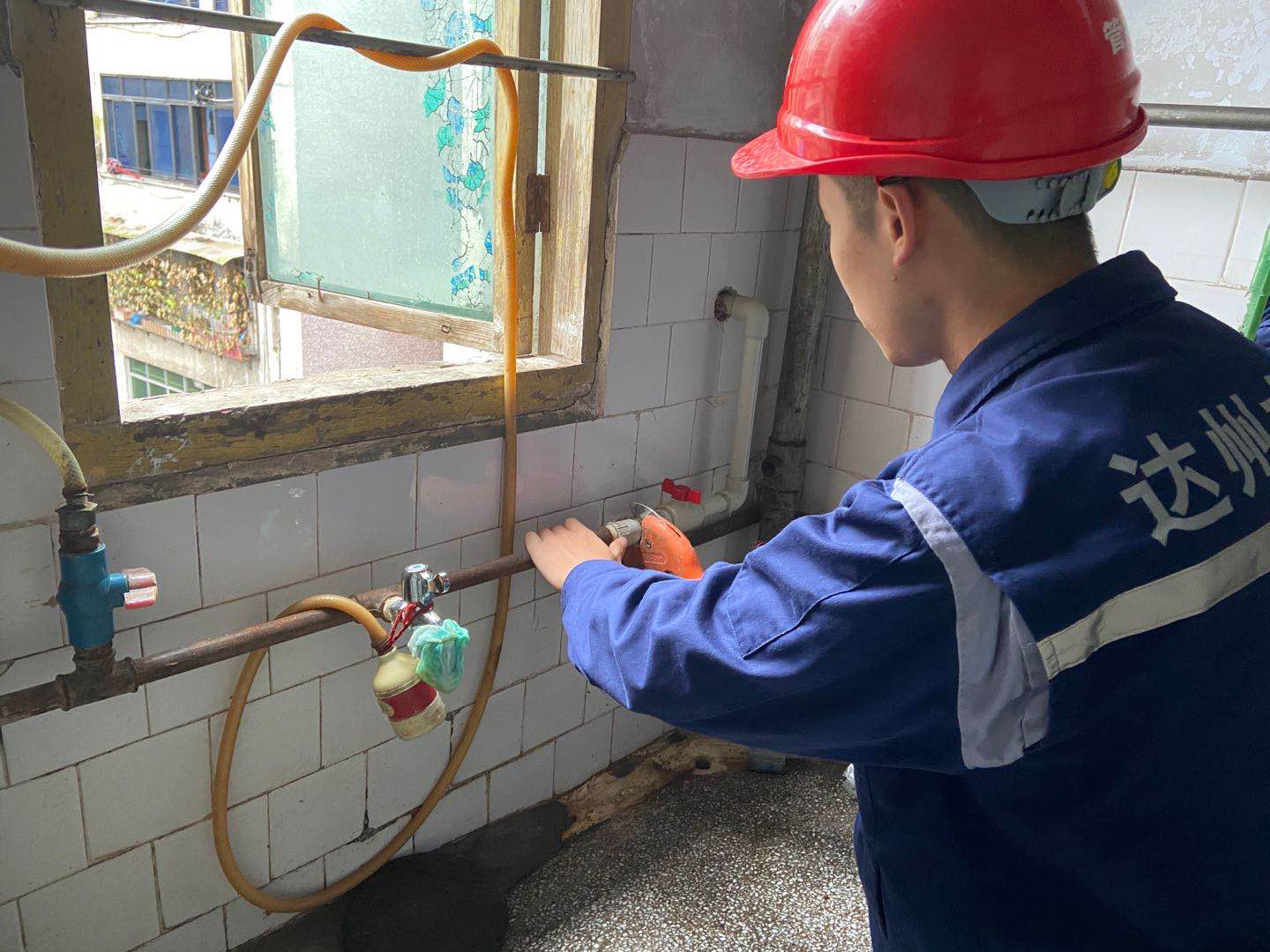 市中區(qū)分公司支部志愿者為結對幫扶失獨老人義務更換老舊水管。